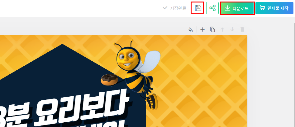 저장과 다운로드는 우측 상단에 위치해 있습니다.